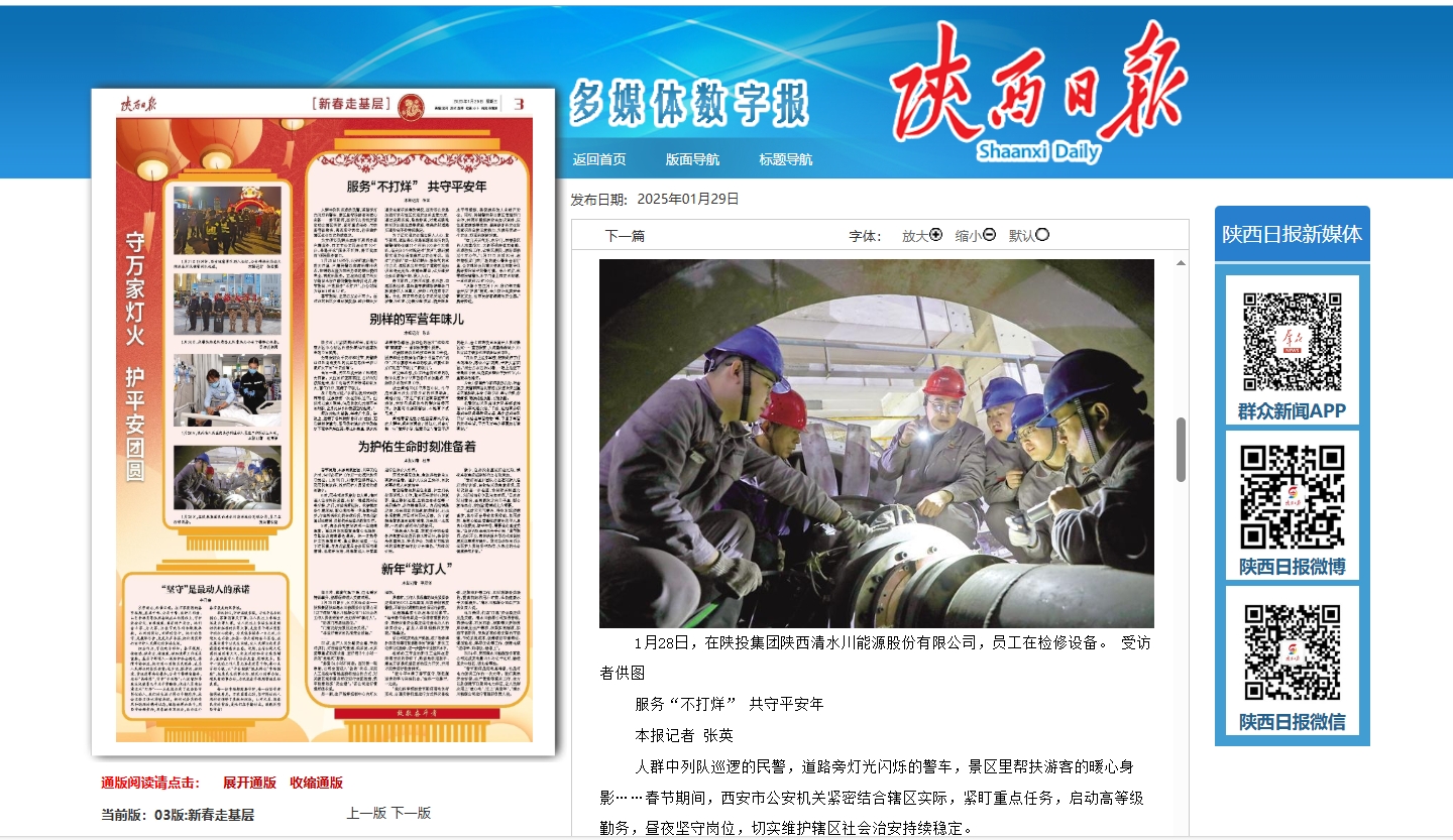 1月28日除夕,火力發電企業——陜投集團陜西清水川能源股份有限公司(以下簡稱“清水川能源公司”)400余名工作人員值班值守,當好新年“掌燈人”。